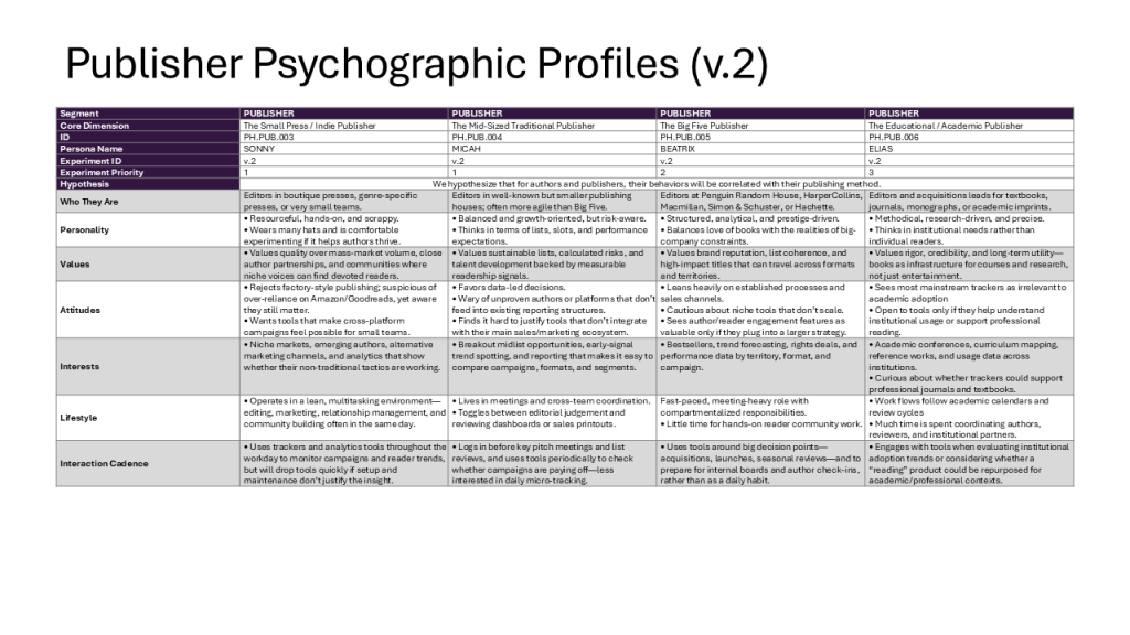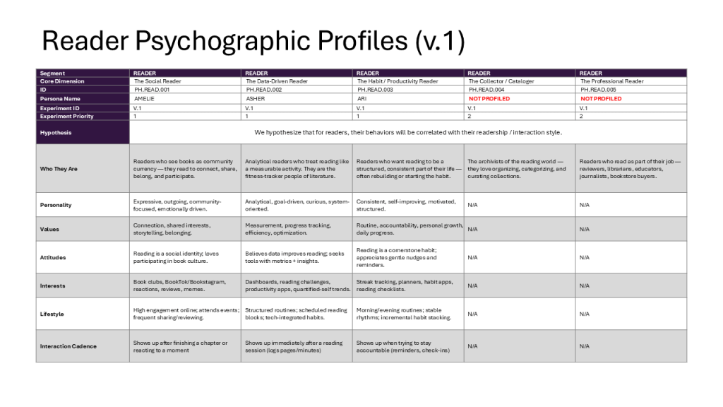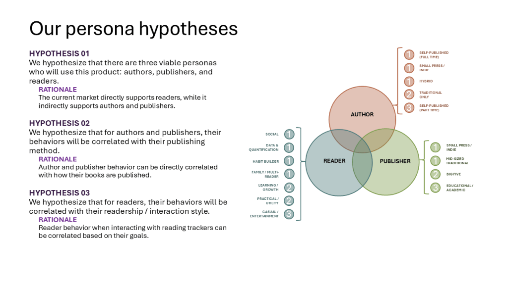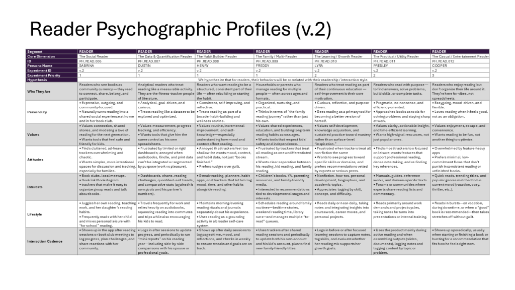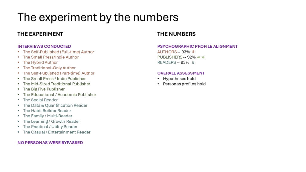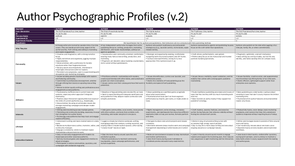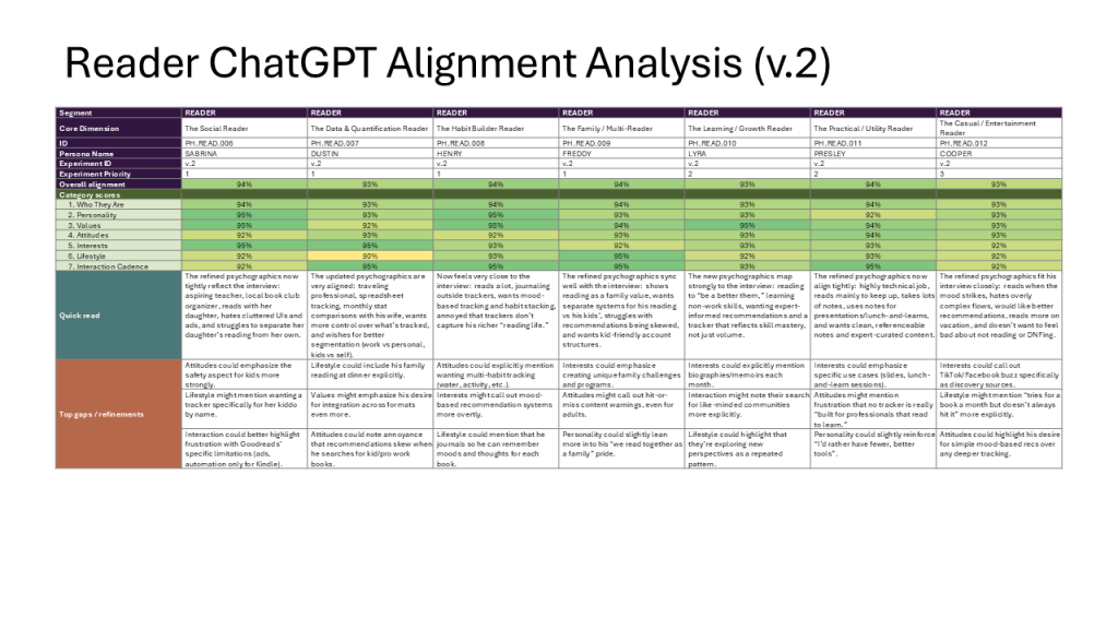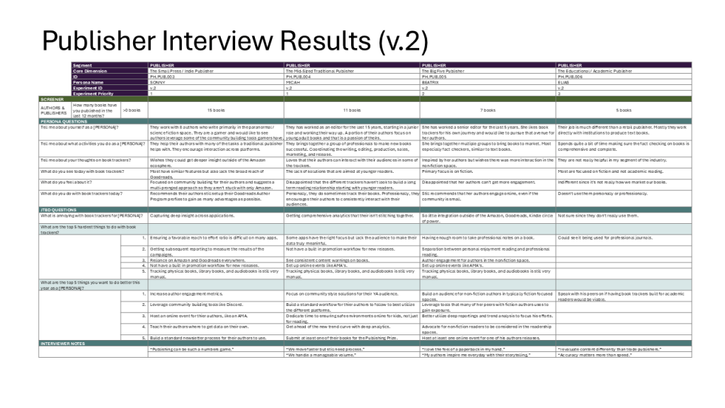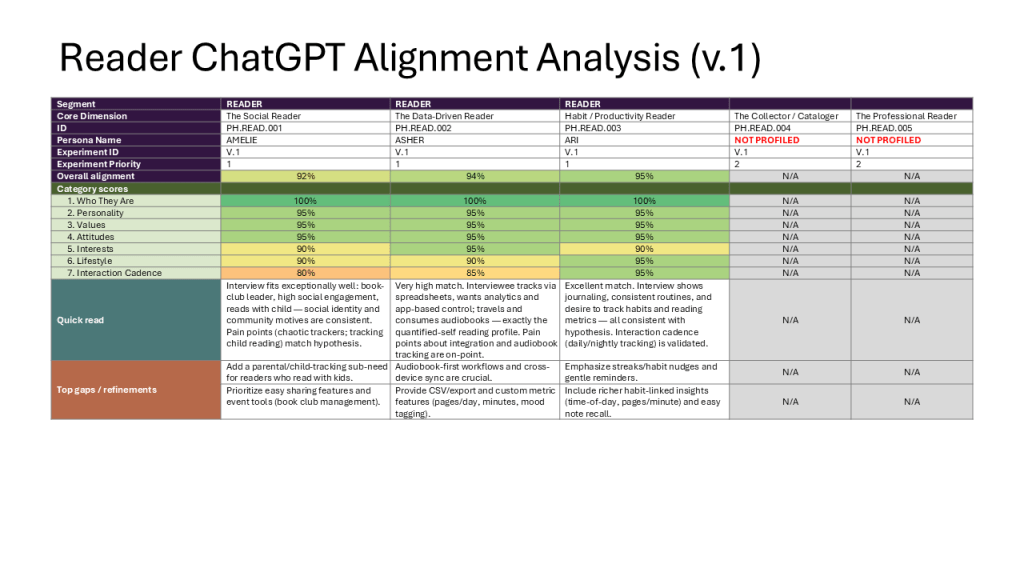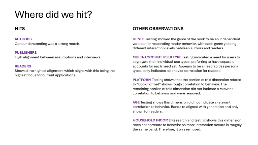 PERSEVERE Hypothesis continues to hold. Persona profiles are now in sufficient alignment to proceed to confirming jobs-to-be-done and beginning to build value propositions.